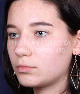 This is a 17 year old high school student who was bothered by the size of her nose and by the hump on her bridge. She was often teased by fellow classmates. As teenagers can be very harsh with their criticisms of each other, she and her family felt that addressing her concerns would help her self confidence. During her consultation, Augusta and Evan, GA Facial Plastic Surgeon, Dr. Achih H. Chen, noted that beyond the hump in her nose, some of the prominence of her nose, especially from the side or profile view, is due to a smaller or underprojected chin. A smaller chin will often make the nose appear more projected (the amounts the nose projects foreward from the face). A more projected or prominent chin will balance the projection of the nose. As a result, she underwent Chin Implant placement as well as Rhinoplasty surgery (nose job) at the Georgia Center for Facial Plastic Surgery serving metro Augusta, GA and Aiken, SC.
